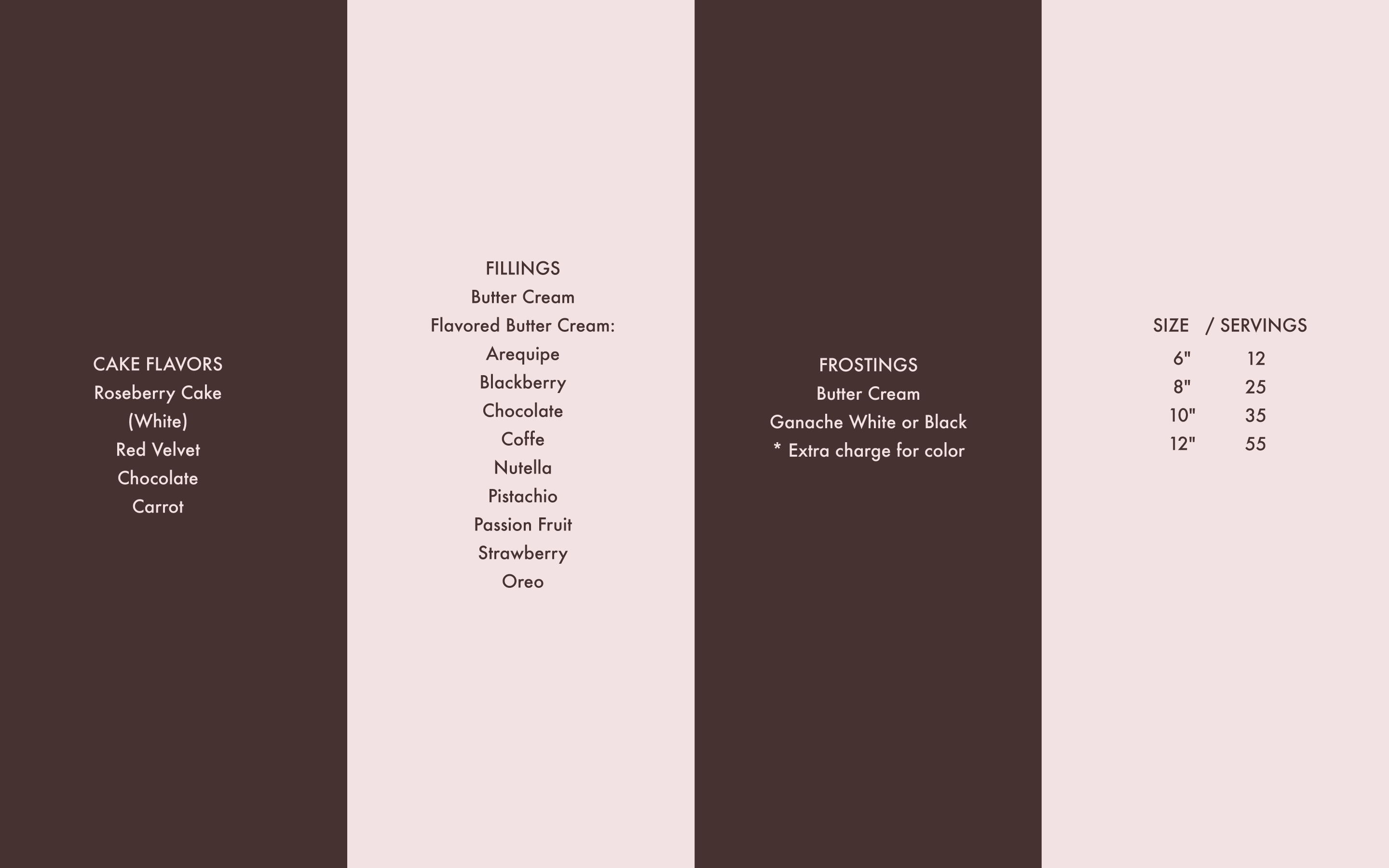 - All cake orders must be placed at least 2 months in advance.